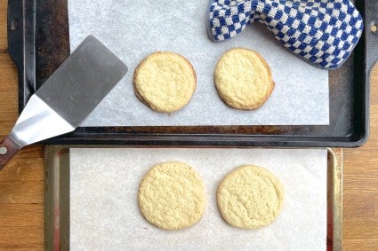 6. Assess the cookies’ spread: Too much spread can be the result of too much sugar or fat, too little flour, or too much liquid (none of which you can easily amend in the dough at this point).